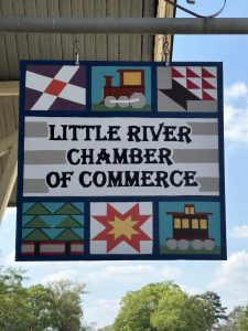 #21-27, The Whistle Stop, is at 180 E. Whitaker St., Ashdown, AR. Stop by our Little River Chamber office and see our new barn quilt chamber sign. Our office building was previously the old train depot. In the history of Ashdown, it was the hub of activity. Our new barn quilt is a 3’x3′ double sided painted wooden sign and hangs on the front side of the building to welcome our visitors. The Whistle Stop awaits your arrival!